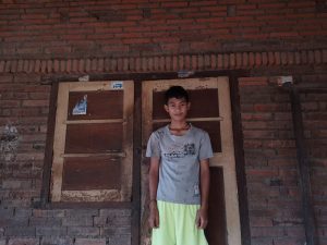 adik hendra saat ini duduk dibangku SMP kelas 7 ,setiap hari adik hendra membantu berjualan canang untuk yang hasilnya digunakan untuk bekal sekolah.