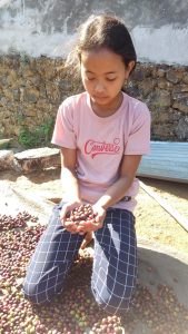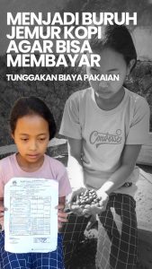 Kini Adik Wahyuni duduk di bangku SMP kelas 7, namun demi bisa bersekolah dia membantu sang ibu untuk menjemur kopi. Upah yang didapatkan juga tak seberapa sehingga hanya cukup untuk kebutuhan sehari saja.