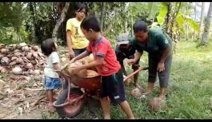 Namun ke tiga sang anak tak tinggal diam mereka justru ikut sebagai buruh Kelapa agar bisa melanjutkan sekolahnya.